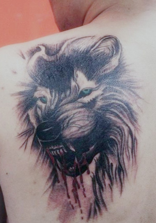 肩背霸气的滴血狼头纹身_肩部纹身图案大全_纹身图吧