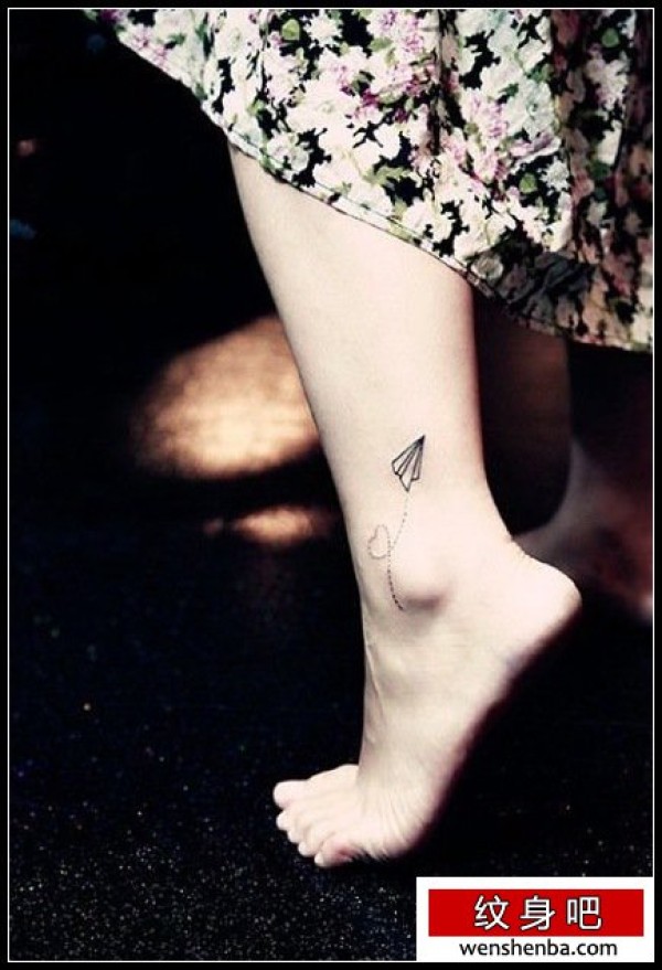 脚部小巧的纸飞机纹身图案_脚部纹身图案大全_纹身图吧