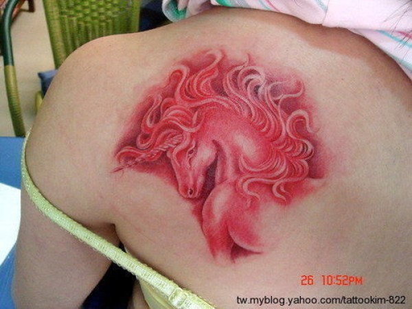 后肩唯美独角兽_肩部纹身图案大全_纹身图吧