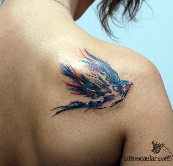 美女后肩彩色燕子_肩部纹身图案大全_纹身图吧