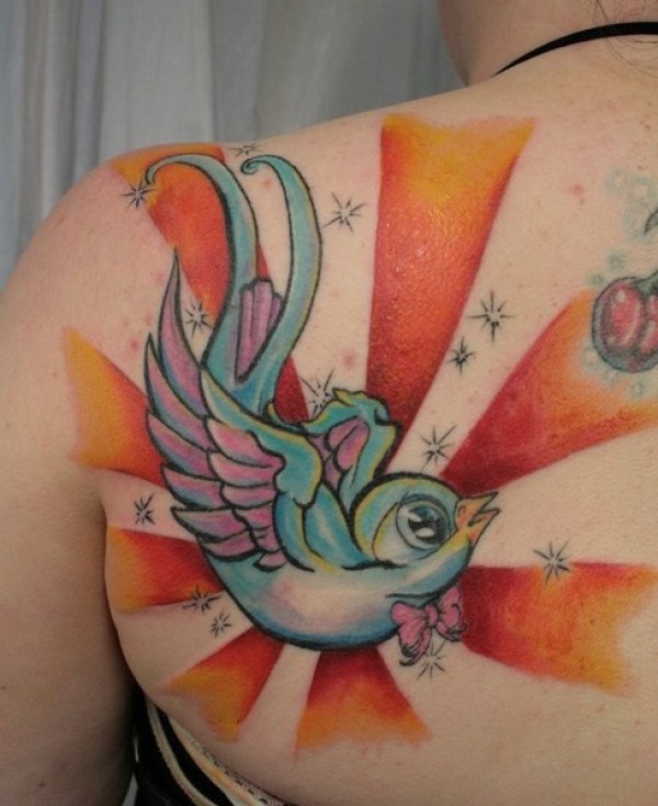 后肩彩色燕子纹身_肩部纹身图案大全_纹身图吧