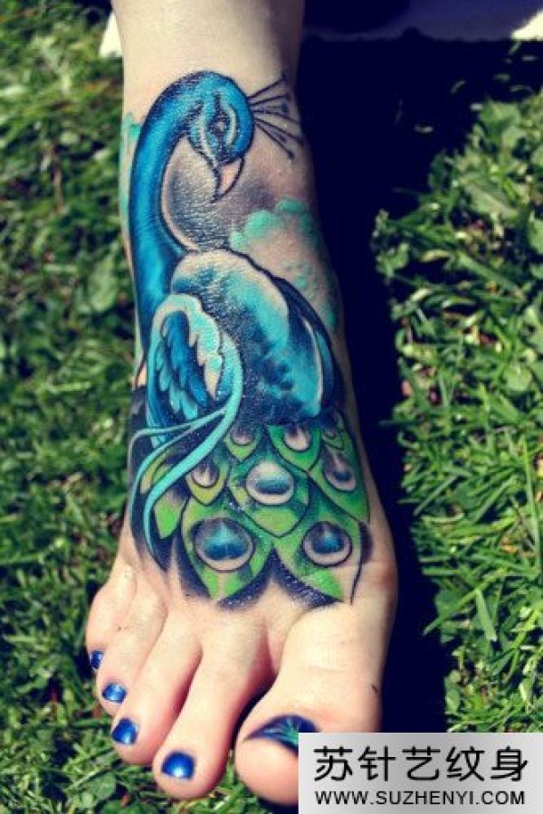 脚背美丽孔雀纹身_脚部纹身图案大全_纹身图吧