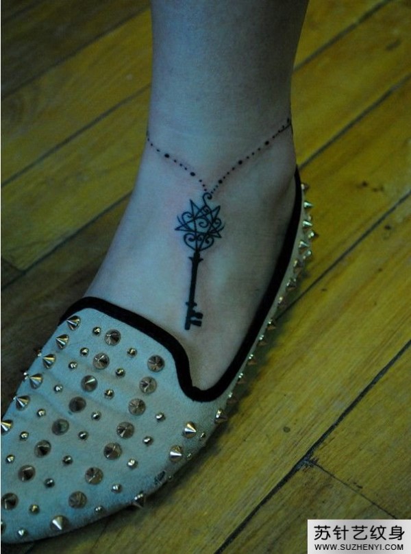 钥匙脚链脚踝纹身图片_脚部纹身图案大全_纹身图吧