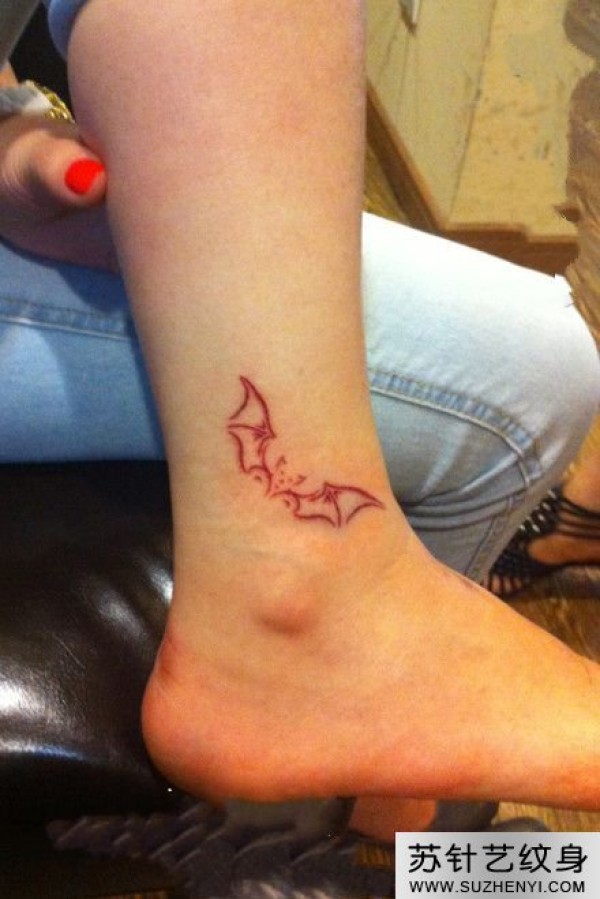 红色小蝙蝠脚踝纹身_脚部纹身图案大全_纹身图吧