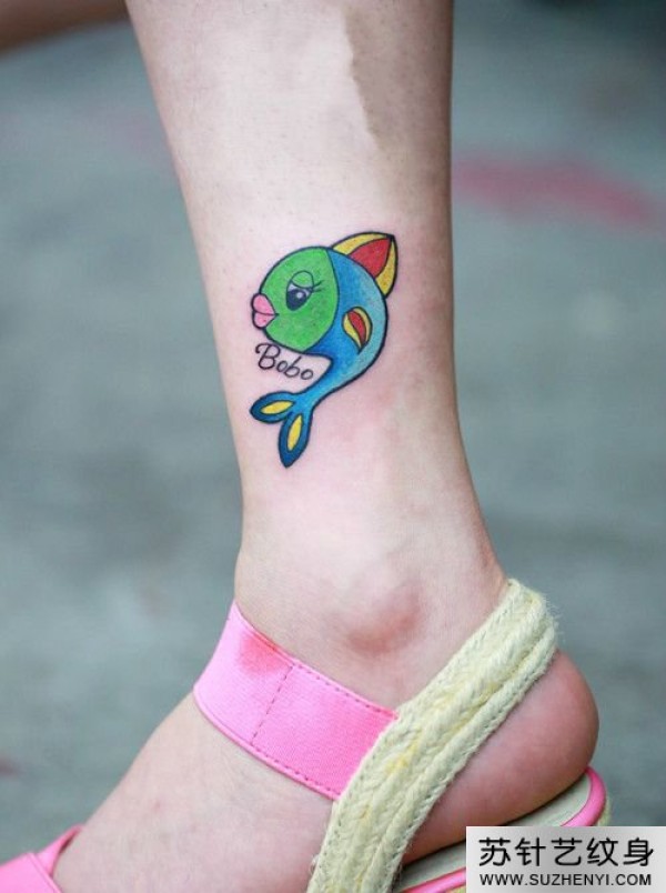 可爱小彩鱼脚踝纹身_脚部纹身图案大全_纹身图吧