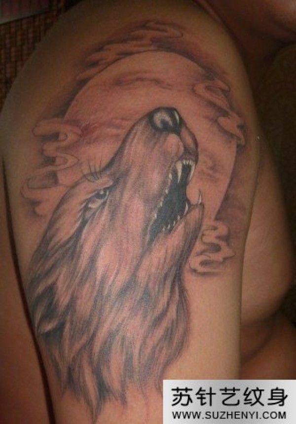 狼啸对月肩部纹身_肩部纹身图案大全_纹身图吧