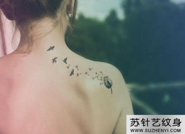 肩部蒲公英唯美纹身_肩部纹身图案大全_纹身图吧