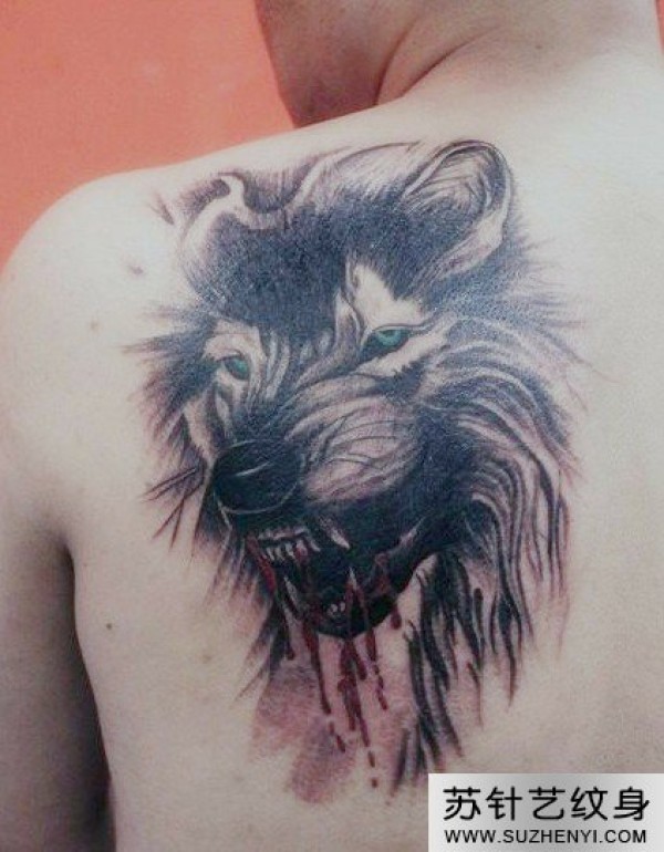 肩背时尚滴血狼头纹身_肩部纹身图案大全_纹身图吧