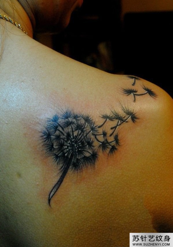 后肩飞舞蒲公英纹身_肩部纹身图案大全_纹身图吧