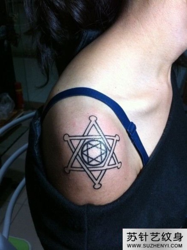 六角芒星阵肩部纹身_肩部纹身图案大全_纹身图吧