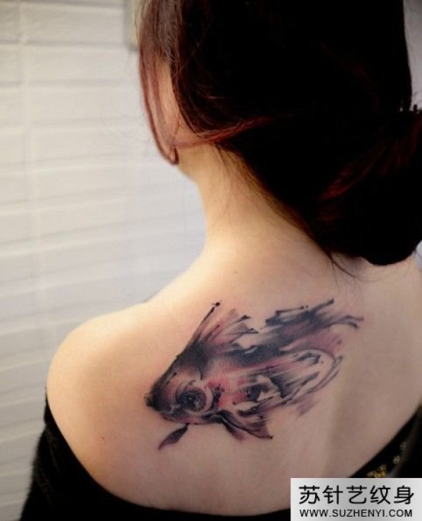 肩胛唯美小鱼刺青_肩部纹身图案大全_纹身图吧