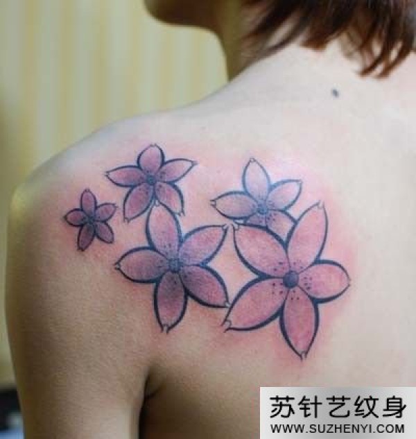 肩部简洁樱花纹身_肩部纹身图案大全_纹身图吧