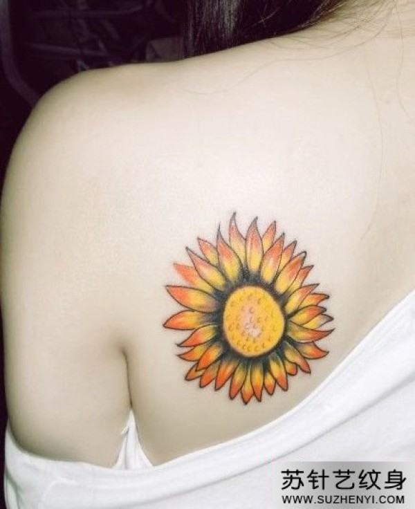 肩胛骨太阳花时尚纹身_肩部纹身图案大全_纹身图吧