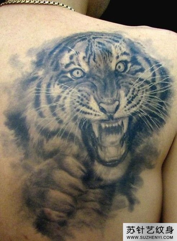 后肩中国水墨画老虎纹身_肩部纹身图案大全_纹身图吧