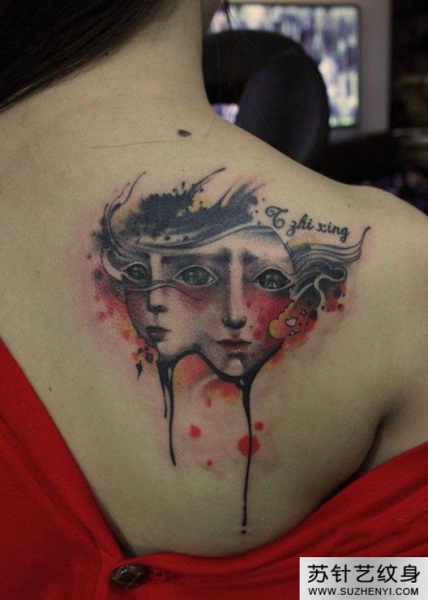 面具美女肩部纹身_肩部纹身图案大全_纹身图吧