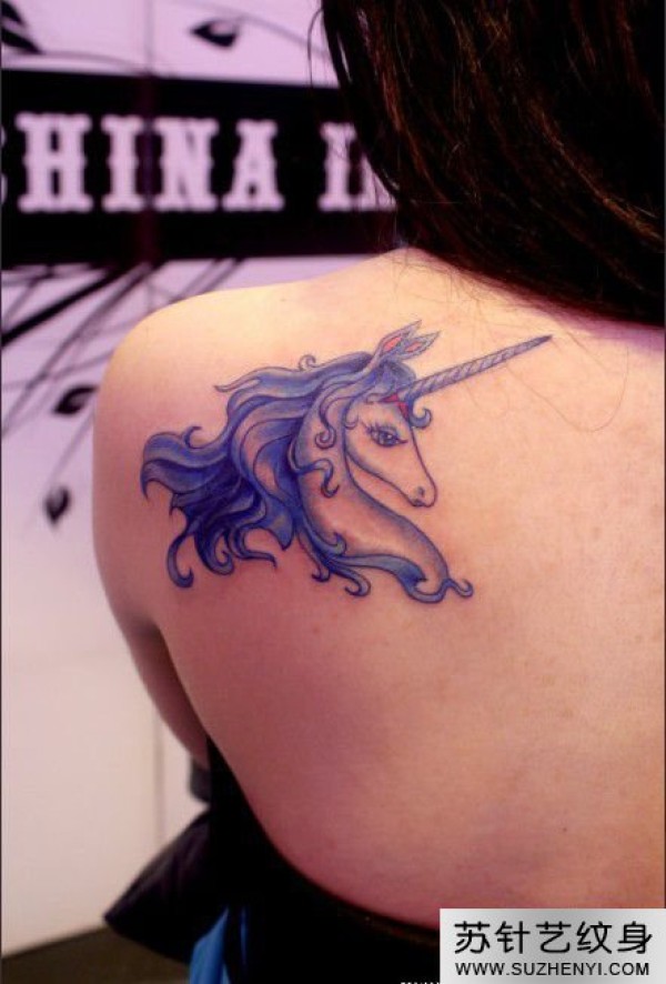 独角兽肩部纹身_肩部纹身图案大全_纹身图吧