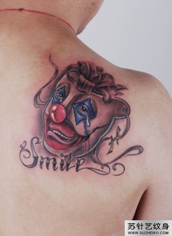 时尚落泪小丑肩部纹身_肩部纹身图案大全_纹身图吧
