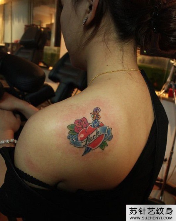 剑刺红心肩部纹身_肩部纹身图案大全_纹身图吧