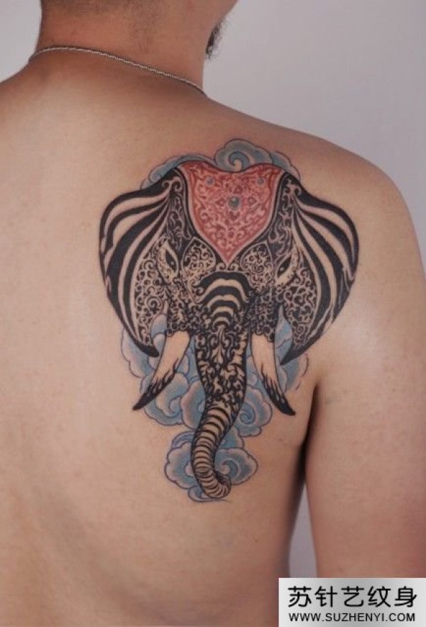 复古大象肩部纹身_肩部纹身图案大全_纹身图吧