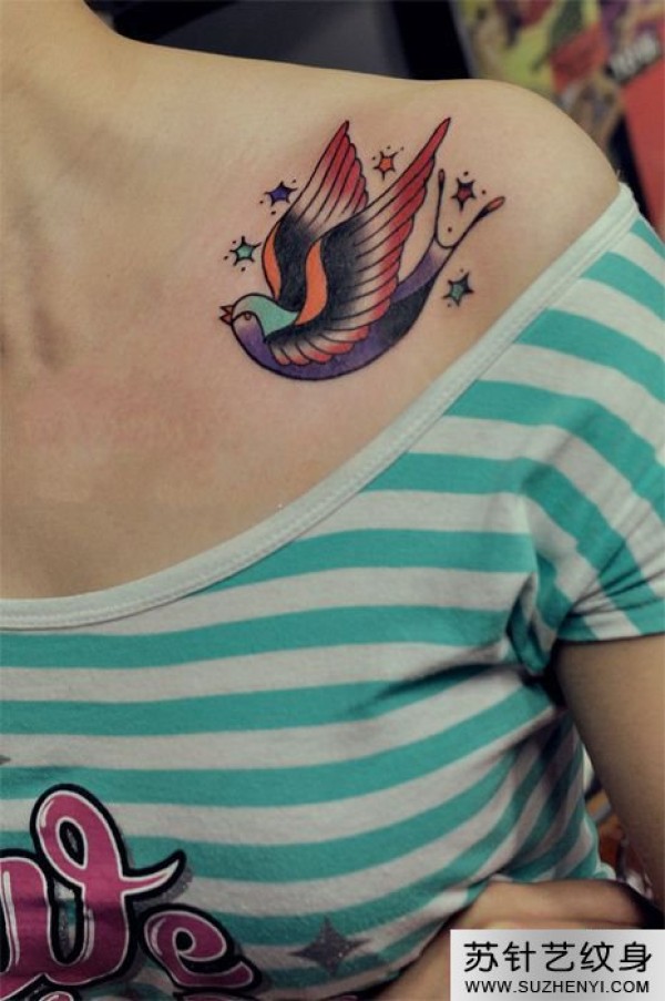 肩部小燕子纹身_肩部纹身图案大全_纹身图吧