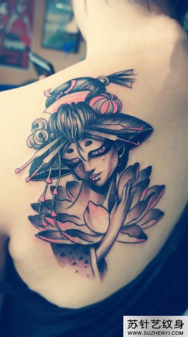 莲花艺妓肩部纹身_肩部纹身图案大全_纹身图吧
