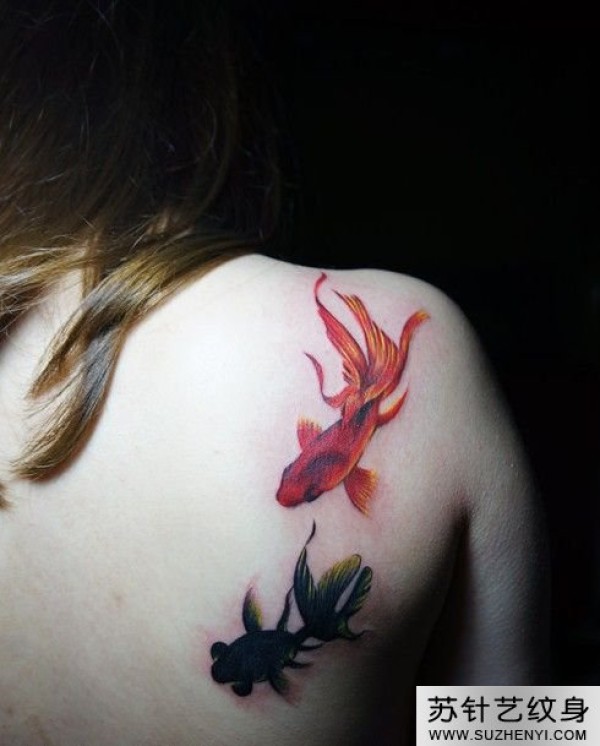 小金鱼肩部个性纹身_肩部纹身图案大全_纹身图吧