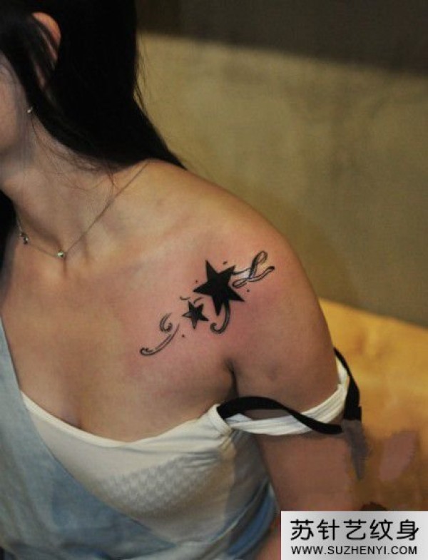 肩部简约星星纹身_肩部纹身图案大全_纹身图吧