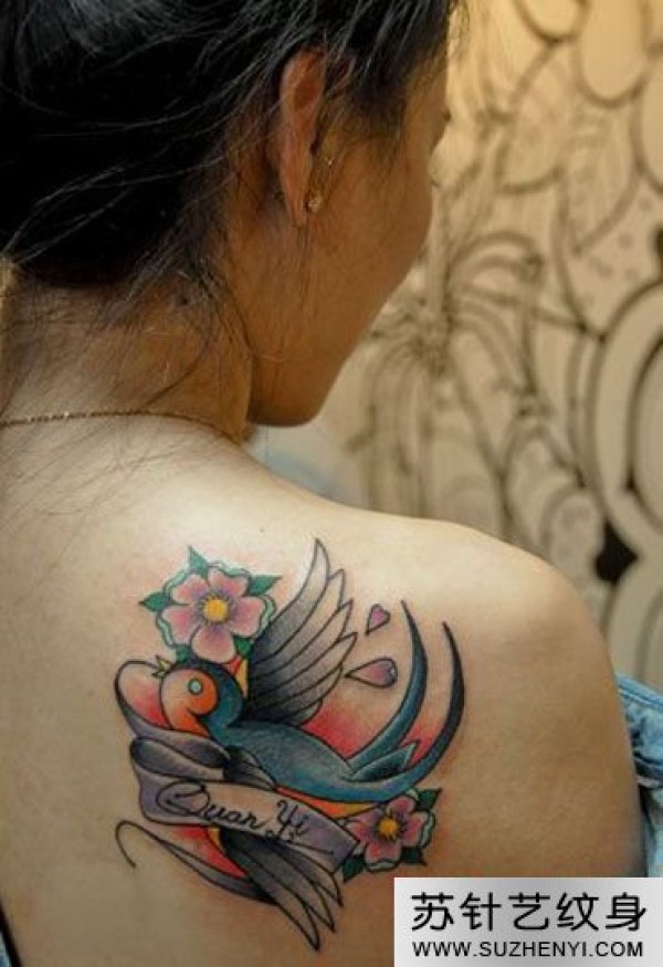 后肩樱花燕子纹身_肩部纹身图案大全_纹身图吧