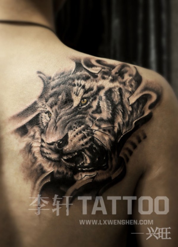 后肩大老虎纹身_肩部纹身图案大全_纹身图吧