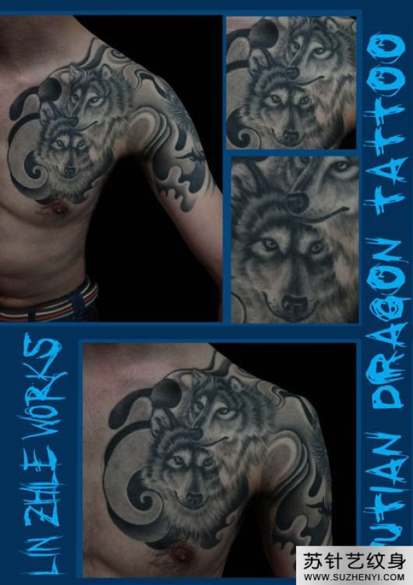 披肩狼头纹身图案_肩部纹身图案大全_纹身图吧