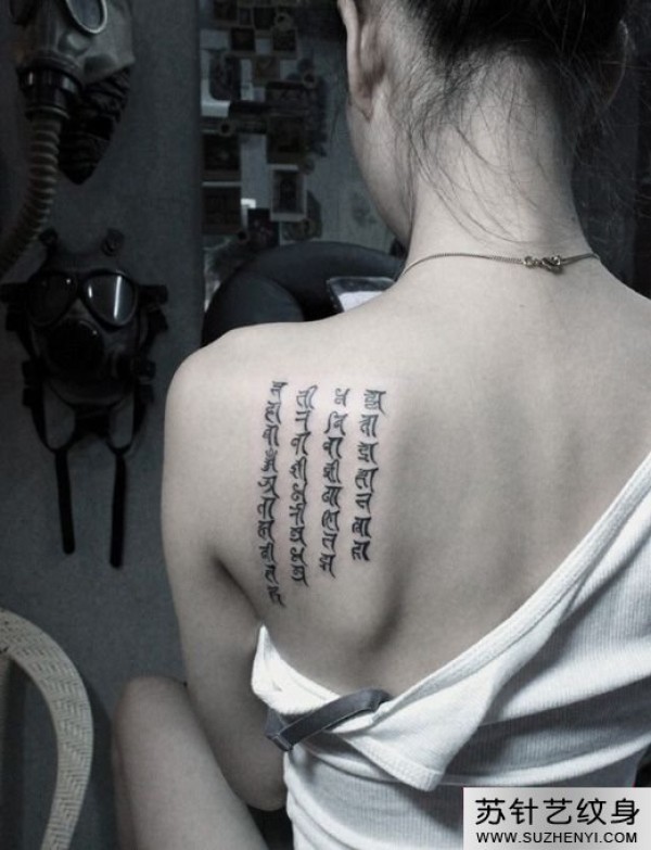 最新简洁的小美女后肩藏文时尚纹身_肩部纹身图案大全_纹身图吧