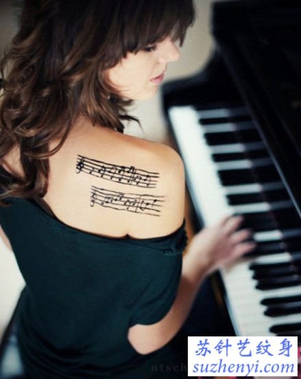 肩部个性乐谱纹身刺青_肩部纹身图案大全_纹身图吧