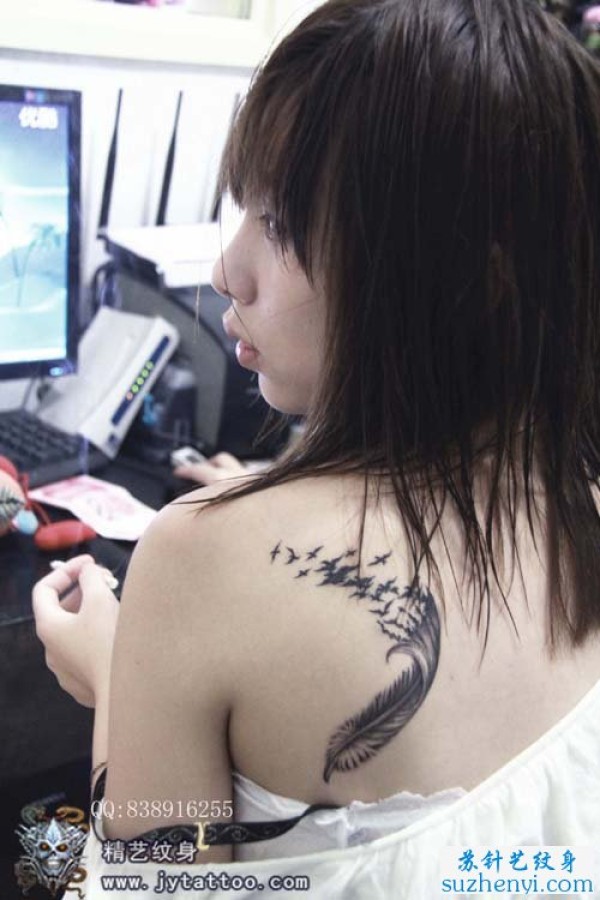 肩背时尚流行的羽化燕纹身图案_肩部纹身图案大全_纹身图吧
