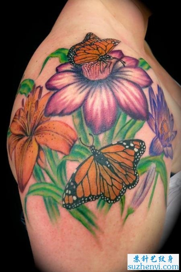 肩膀艳丽百合纹身_肩部纹身图案大全_纹身图吧