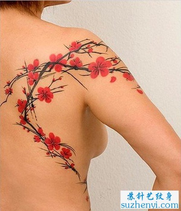 漂亮的后肩背梅花纹身_肩部纹身图案大全_纹身图吧