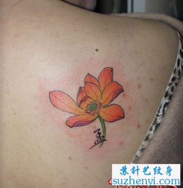肩背彩色莲花纹身_肩部纹身图案大全_纹身图吧