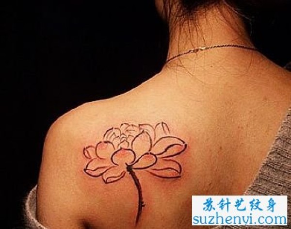 肩部水墨画莲花纹身_肩部纹身图案大全_纹身图吧