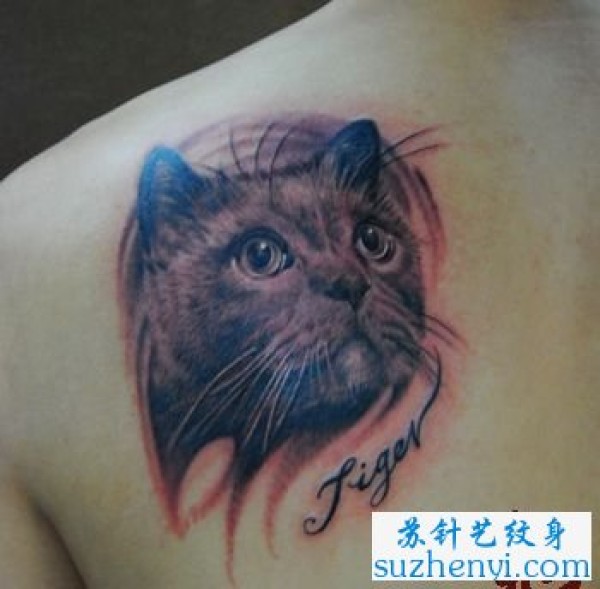 肩背猫咪纹身_肩部纹身图案大全_纹身图吧