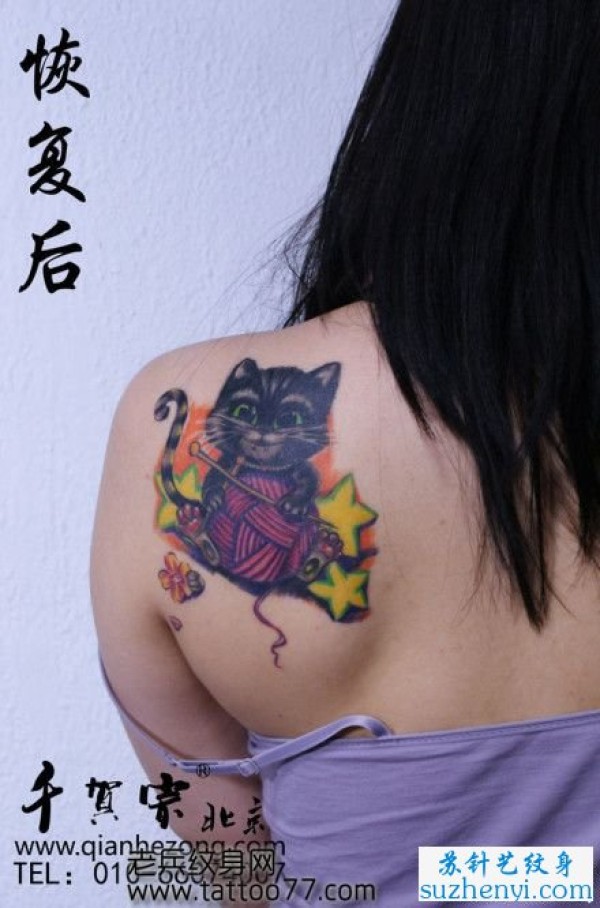 肩部彩色猫咪纹身_肩部纹身图案大全_纹身图吧