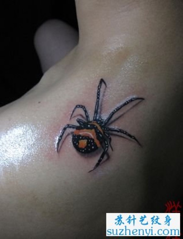 肩部彩色蜘蛛纹身_肩部纹身图案大全_纹身图吧