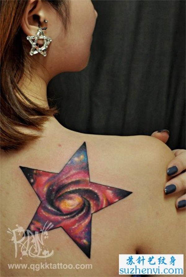 肩背彩色五角星星空纹身_肩部纹身图案大全_纹身图吧