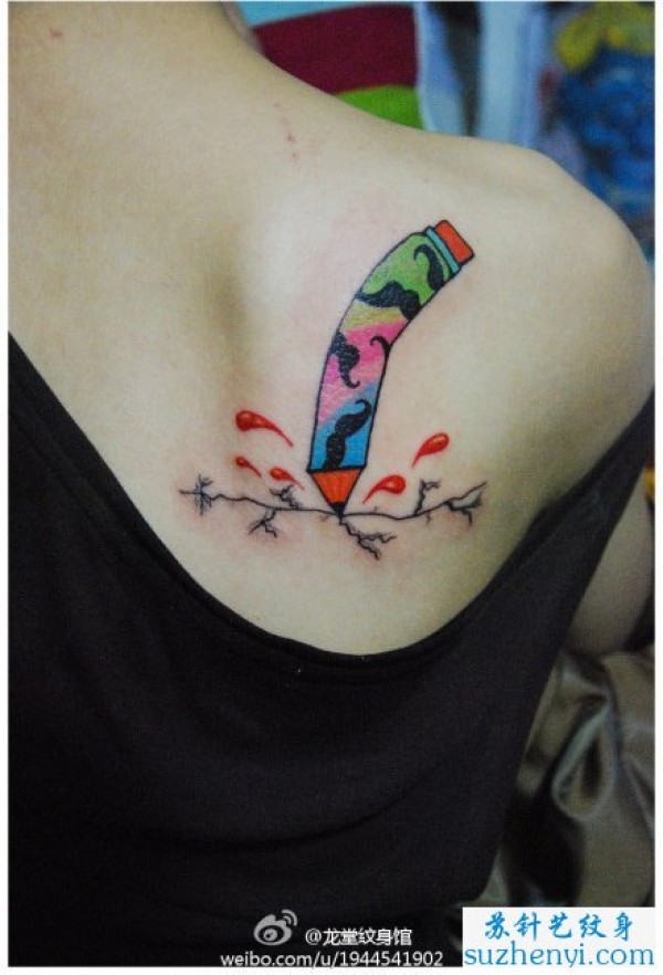 肩背彩色铅笔纹身_肩部纹身图案大全_纹身图吧