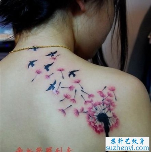 肩背蒲公英与鸽子纹身_肩部纹身图案大全_纹身图吧