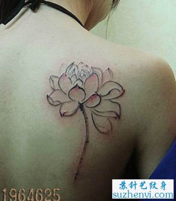 肩背水墨风格莲花纹身_肩部纹身图案大全_纹身图吧