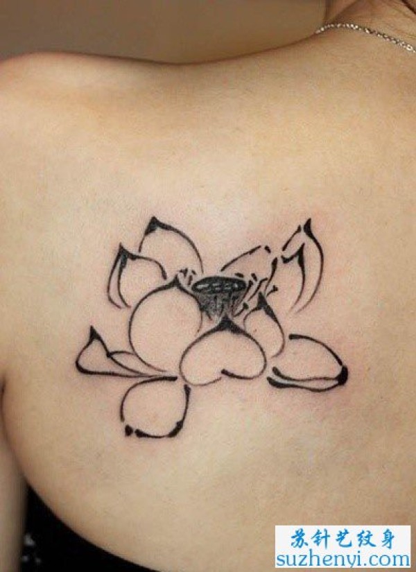 肩背一枚水墨画莲花纹身_肩部纹身图案大全_纹身图吧