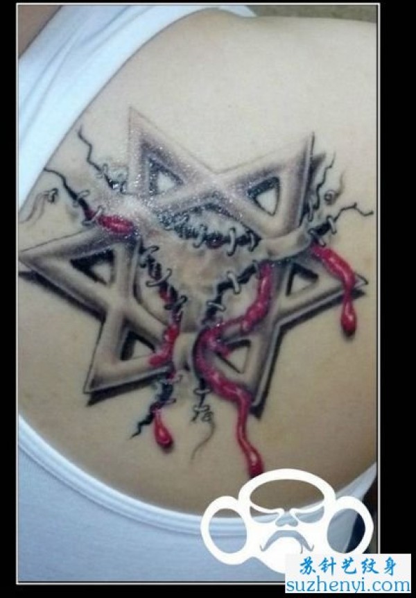 肩部撕皮滴血六芒星纹身_肩部纹身图案大全_纹身图吧