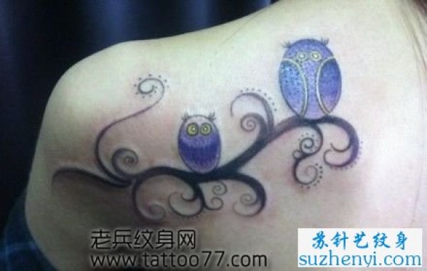 肩部猫头鹰纹身_肩部纹身图案大全_纹身图吧