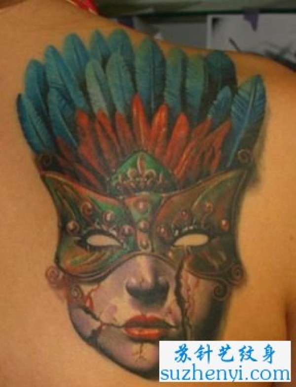 肩部彩色威尼斯面具纹身_肩部纹身图案大全_纹身图吧