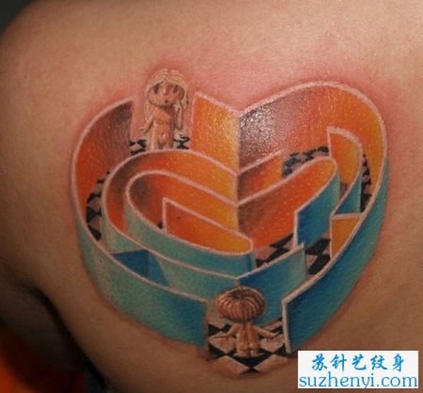 肩部彩色爱心迷宫纹身_肩部纹身图案大全_纹身图吧