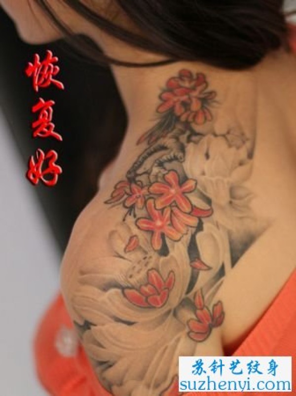 肩部莲花花卉纹身_肩部纹身图案大全_纹身图吧